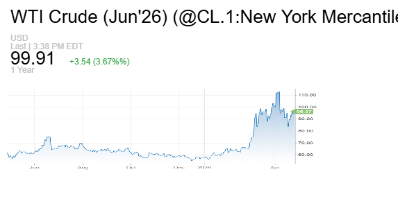 كما ارتفعت العقود الآجلة للخام الأميركي عند التسوية بمقدار 3.56 دولار أو بنسبة 3.69% لتسجل 99.93 دولار للبرميل، في ظل استمرار حالة التوتر في الأسواق.