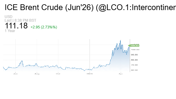وصعدت العقود الآجلة لخام برنت عند التسوية بمقدار 3.03 دولار أو بنسبة 2.8% لتسجل 111.26 دولار للبرميل، لكنها قلّصت مكاسبها بعد إعلان دولة الإمارات قرارها بالخروج من منظمة البلدان المصدرة للبترول "أوبك" وتحالف "أوبك+".