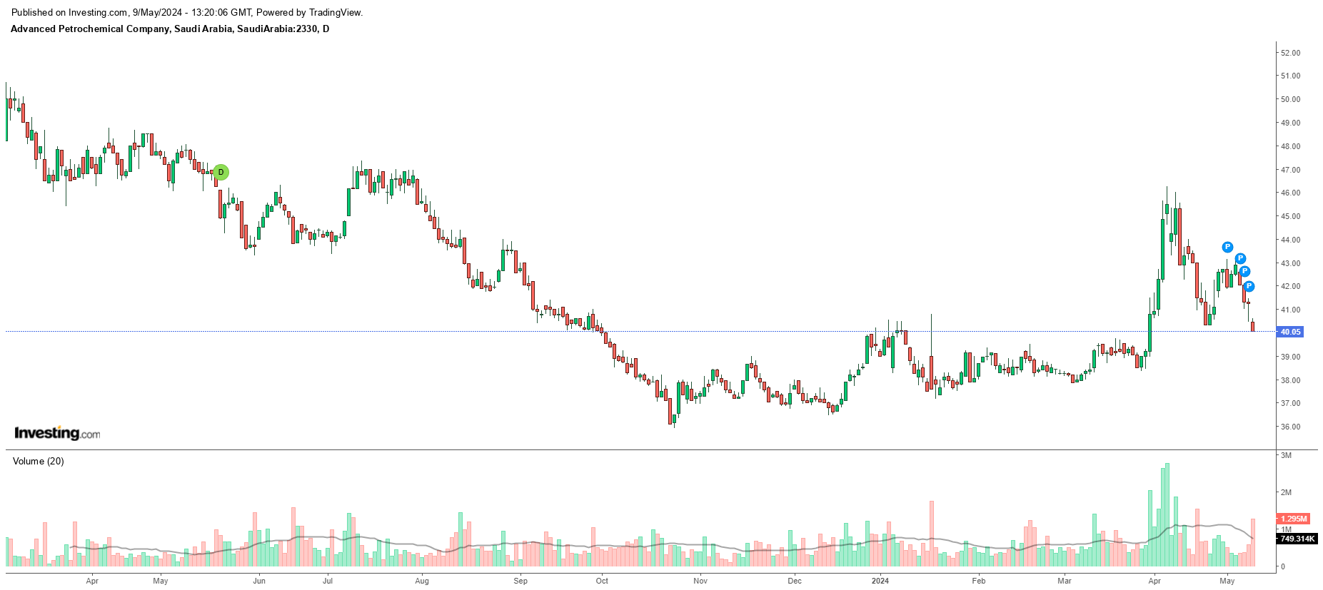 ومن الأسهم التي شهدت تحركات كبيرة خلال جلسة اليوم، سهم المتقدمة الذي تراجع بنحو 3%، وذلك بعد أن تحولت الشركة إلى الخسارة بالربع الأول من هذا العام متكبدةً 58 مليون ريال.