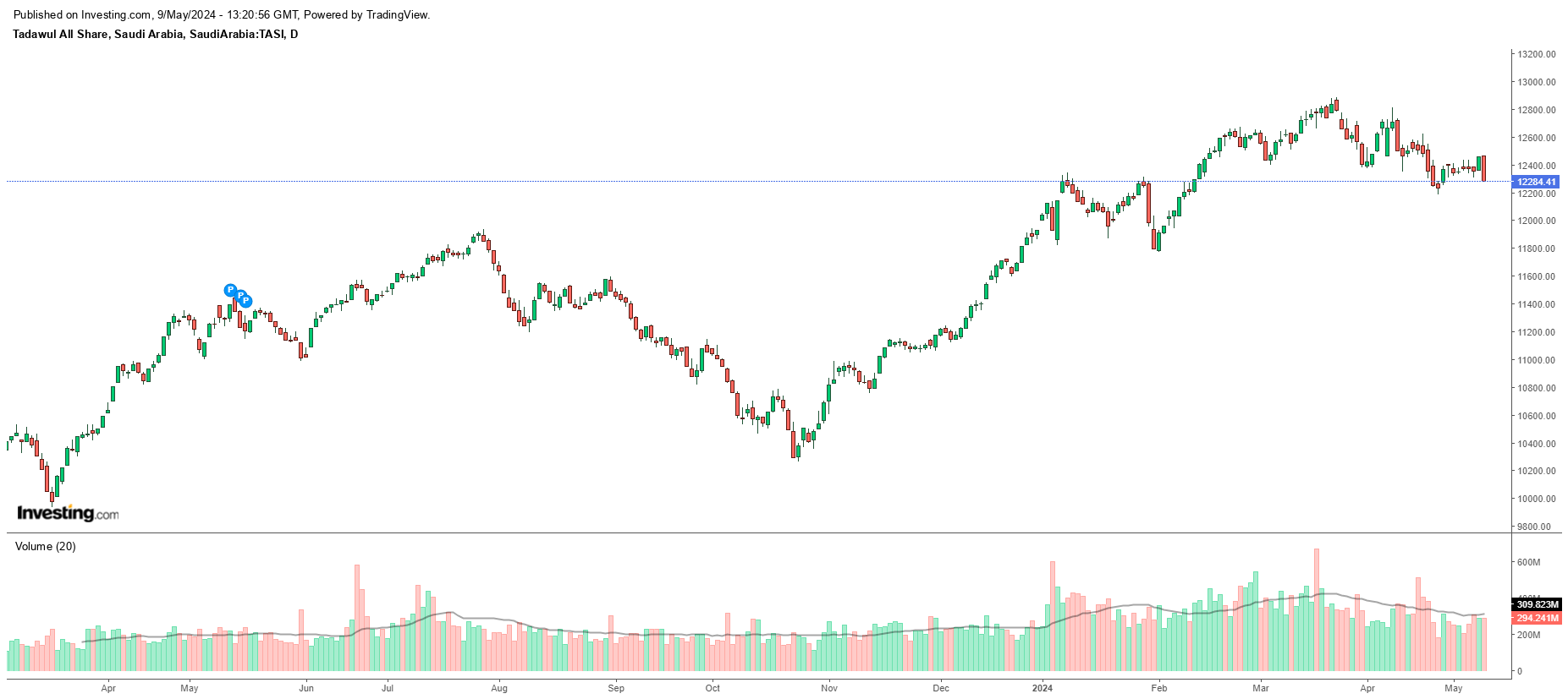 أنهى مؤشر تاسي السعودي آخر جلسات الأسبوع بالمنطقة الحمراء، حيث فقد 1.41% وأغلق عند مستويات 12284.41 نقطة.