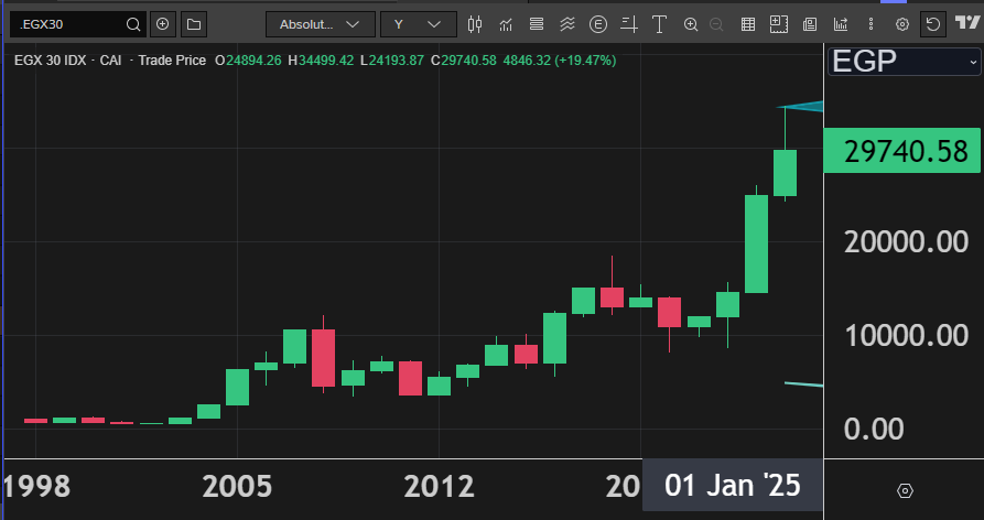 "EGX30" يسجل أعلى إغلاق سنوي في تاريخه بمكاسب 19.5%