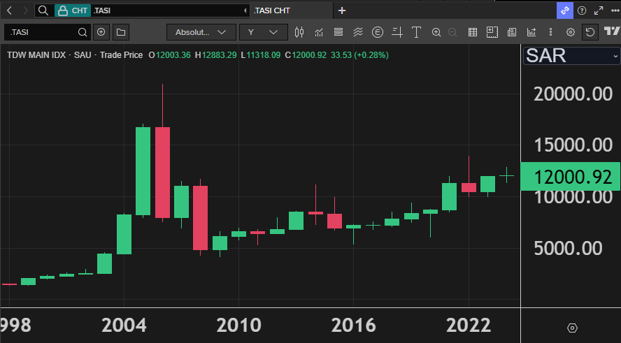 أنهى المؤشر السعودي آخر جلسات 2024، على ارتفاع ليغلق عند أعلى مستوى في أسبوعين، بدعم من أغلب القطاعات، ليواصل مكاسبه للجلسة الثالثة على التوالي، بارتفاع 0.3% عند 12036 نقطة.
